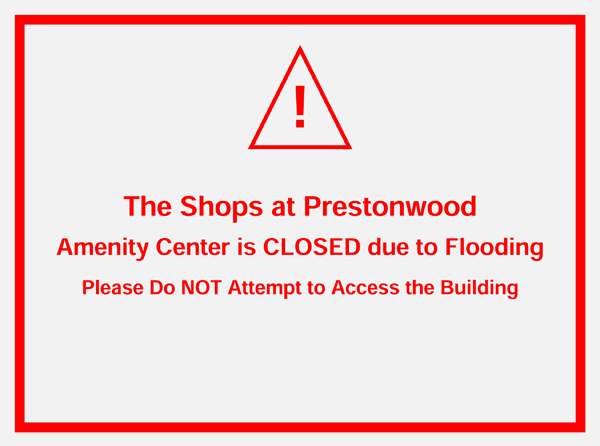The Shops at Prestonwood amenity center is closed temporarily due to flooding. We will send out a notice once it is safe to use again. Click Full Story for more information.
